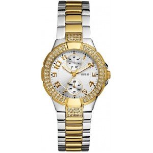 Multifunction: Day, Date 36/36/11 Silver + gold-tone + crystal case Silver + gold-tone dial Silver + gold-tone Steel bracelet 100 M/330 FT 10 Year Limited Warranty Women's Accessories > Watches > Guess Watches- Guess G13537L Gold Prism Ladies Watch